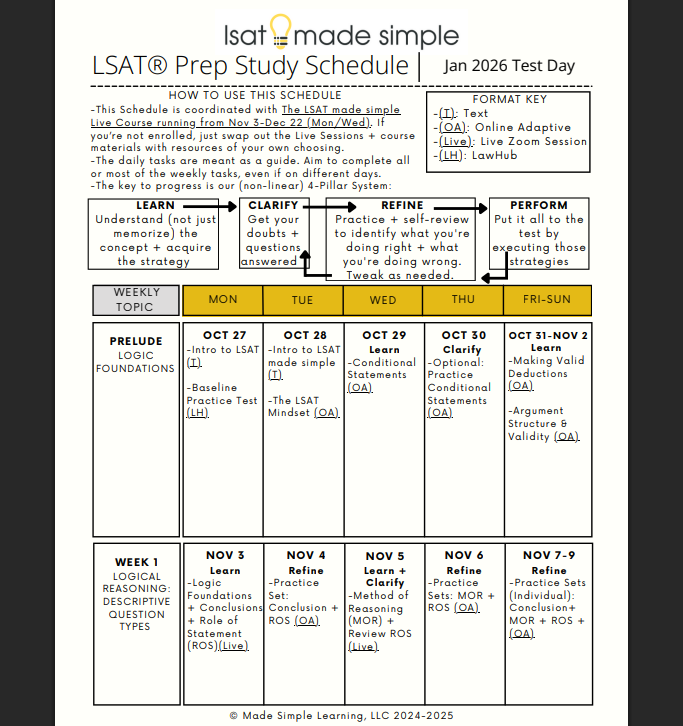A well-organized plan that covers all LSAT sections, ensuring you're fully prepared for the exam.